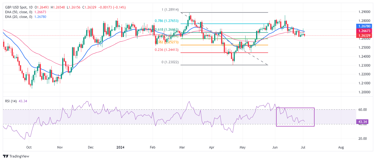 La Libra cae por debajo de las medias móviles exponenciales (EMAs) de 20 y 50 días cerca de 1.2675 y 1.2666, respectivamente, lo que sugiere que la perspectiva a corto plazo es bajista.