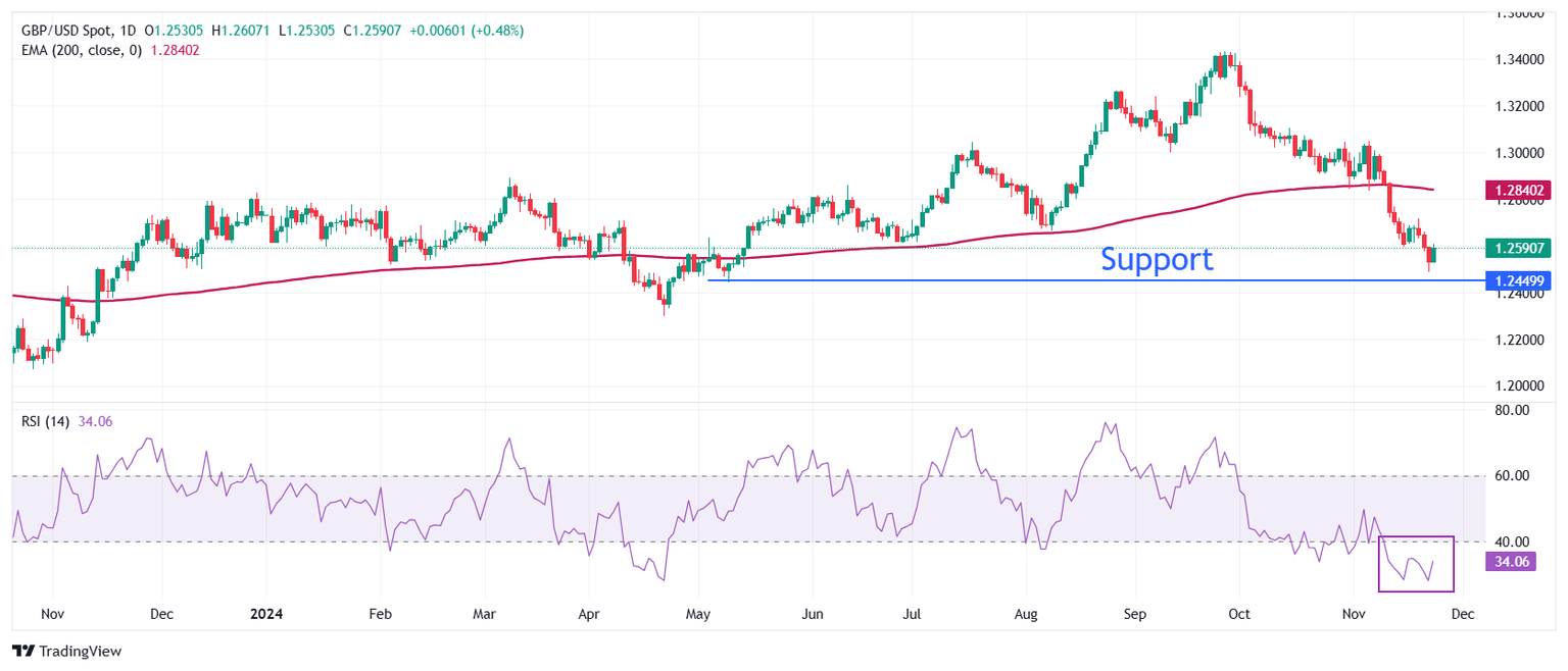 La Libra esterlina rebota después de deslizarse por debajo del soporte psicológico de 1.2500 frente al Dólar estadounidense. El par GBP/USD se recupera, pero los participantes del mercado podrían usar este rebote para construir nuevas posiciones de venta ya que la tendencia general sigue siendo bajista, con la media móvil exponencial (EMA) de 200 días cotizando cerca de 1.2800.
