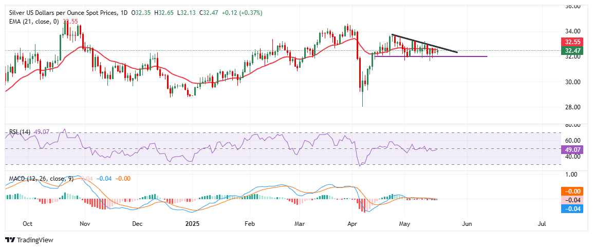 - El XAG/USD rebota a 32.50$ el martes después de mantenerse firme por encima del soporte clave de 32.00$.