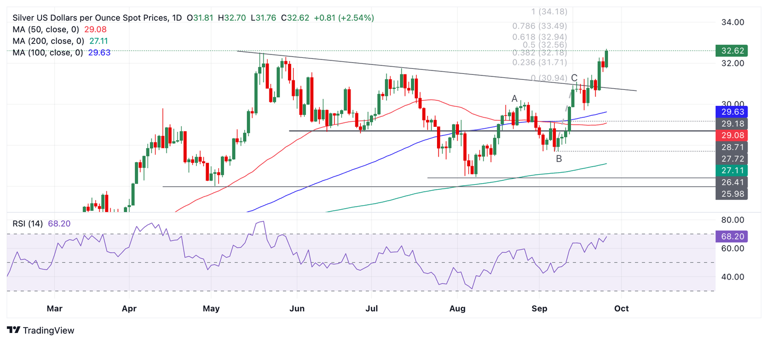 La Plata (XAG/USD) alcanza un nuevo máximo para 2024 y un máximo de 12 años en general el jueves, después de que las autoridades chinas anunciaran otro estímulo adicional de 1 billón de CNY además del paquete de medidas ya propuesto por el Banco Popular de China (PBoC). China es el mayor consumidor de Plata en el mundo, por lo que se espera que el estímulo aumente la demanda del commodity.