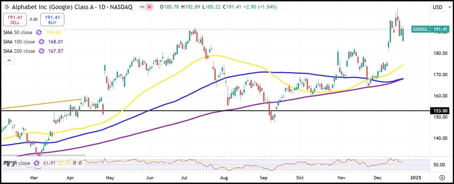 Pero debido a un rally a finales de año, las acciones de GOOGL han ganado un 37% en lo que va del año, y parece probable que este éxito continúe.