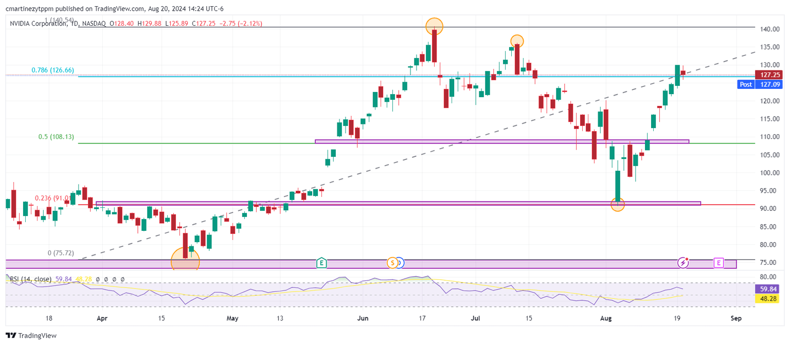 NVIDIA tuvo un retroceso importante cayendo hasta 90.69 $ el 5 de agosto, después de alcanzar su máximo histórico en 140.76 $ el 20 de junio. Los valores de la compañía se han recuperado y han experimentado un rally alcista, operando al momento de escribir en 127.25 $. El consenso de los analistas espera que supere su máximo histórico en el corto plazo y pueda posicionarse de nueva cuenta como la compañía más valiosa del mundo, por encima de Apple y Microsoft.