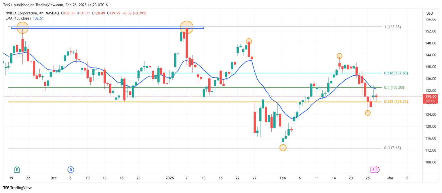 Los valores de Nvidia (NVDA) marcaron un mínimo del día en 128.49$, donde encontraron compradores agresivos que impulsaron el precio de la acción a un máximo de dos días en 133.73$. Al momento de escribir, NVDA cotiza sobre 129.80$ ganando un 2.50% en la jornada del miércoles.