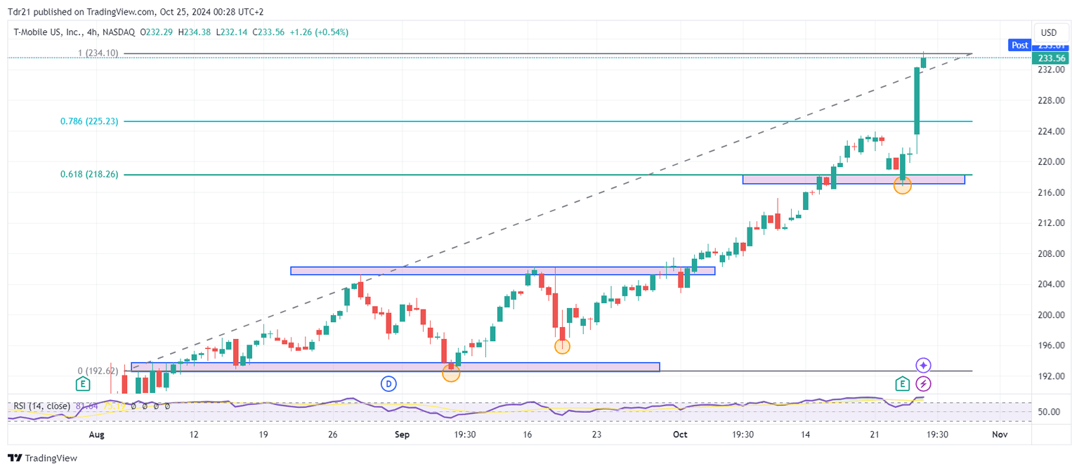 Tras estos resultados, TMUS alcanzó un nuevo máximo histórico en 234.40$, firmando su segunda sesión consecutiva al alza, reflejando la confianza que tienen los inversionistas en la compañía.