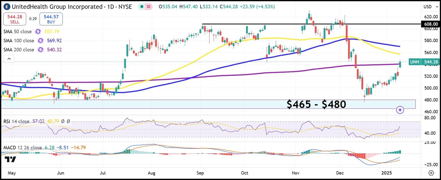 Las acciones de UNH finalmente están volviendo a la normalidad después de que el CEO de UnitedHealthcare, Brian Johnson, fuera asesinado a tiros fuera de una reunión de inversores en Midtown Manhattan el 4 de diciembre, lo que llevó a una búsqueda de una semana que sacó a la luz el historial de UnitedHealth de negar reclamaciones de salud y su impopularidad general con el público.