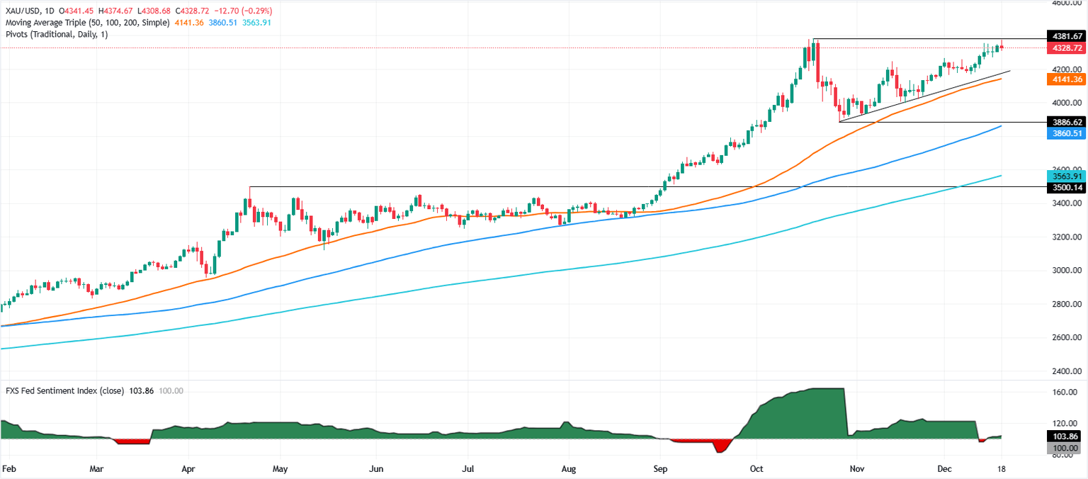 Si el XAU/USD cierra por debajo de 4.350$ de manera diaria, el primer soporte sería 4.300$. Una ruptura de este último expondrá el máximo del 11 de diciembre en 4.285$, con un soporte adicional en 4.250$ antes de un retroceso más profundo hacia 4.200$.