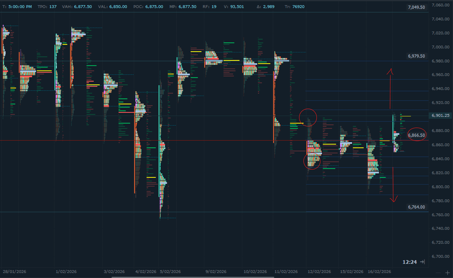 El martes se entregó una rotación completa, pero la imagen más grande sigue siendo la misma: febrero sigue siendo una estructura bidireccional. El desarrollo clave para hoy es CP 6866.50 recuperado, devolviendo al mercado a la rotación de la mitad superior.