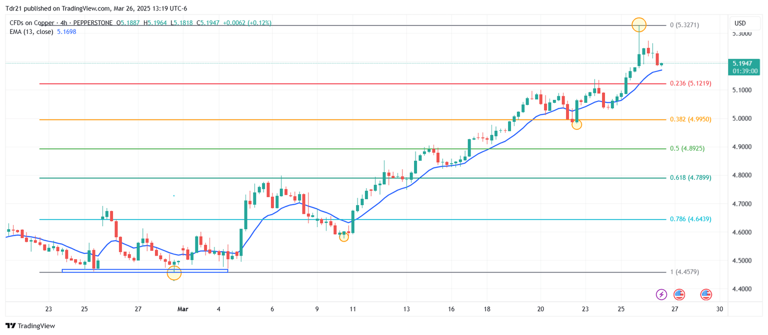 El cobre estableció un mínimo del día en 5.1768$, encontrando compradores agresivos que llevaron el precio del cobre a un nuevo máximo histórico en 5.3266$. En estos momentos, el cobre opera en 5.1922$, ganando un 0.27% el día de hoy.