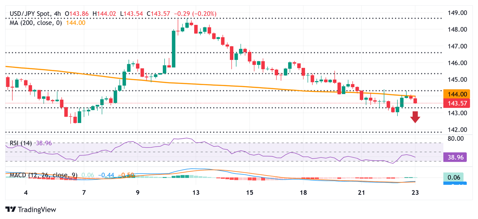 Mientras tanto, las negociaciones comerciales entre EE.UU. y Japón parecen estar avanzando, ya que los funcionarios continúan reuniéndose regularmente. De hecho, el principal negociador de tarifas de Japón, Ryosei Akazawa, tiene la intención de visitar EE.UU. alrededor del 30 de mayo para otra ronda de conversaciones con la administración Trump. Esto genera esperanzas de un acuerdo comercial temprano, lo que, a su vez, proporciona un impulso adicional al JPY y contribuye a la caída intradía del par USD/JPY de nuevo por debajo de los 143.00. Además, el trasfondo fundamental sugiere que el camino de menor resistencia para el JPY sigue siendo al alza y apoya las perspectivas de una extensión de la reciente trayectoria descendente del par de divisas observada durante las últimas dos semanas.