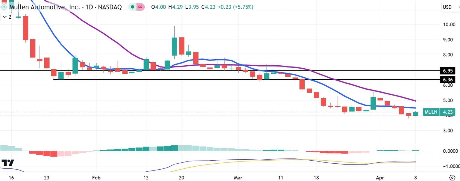 Las acciones de Mullen han bajado un 70% en lo que va de año y un 99% en el último año. Tras su última división inversa de acciones el pasado diciembre, MULN ha seguido desplomándose a medida que los warrants anteriores se canjeaban por acciones ordinarias, presionando a la baja el precio de la acción.