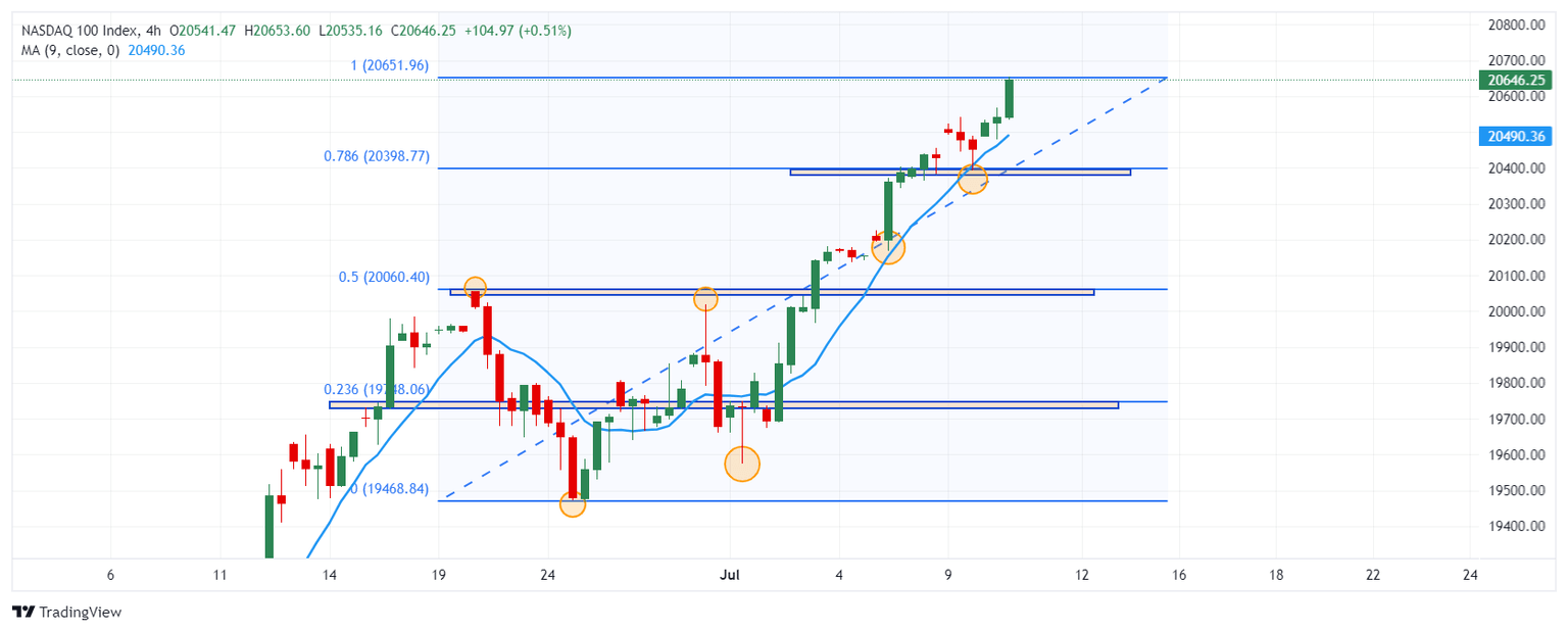- El Nasdaq 100 alcanzó un nuevo máximo histórico en 20.641, después de las declaraciones de Jerome Powell ante la Cámara de Representantes.