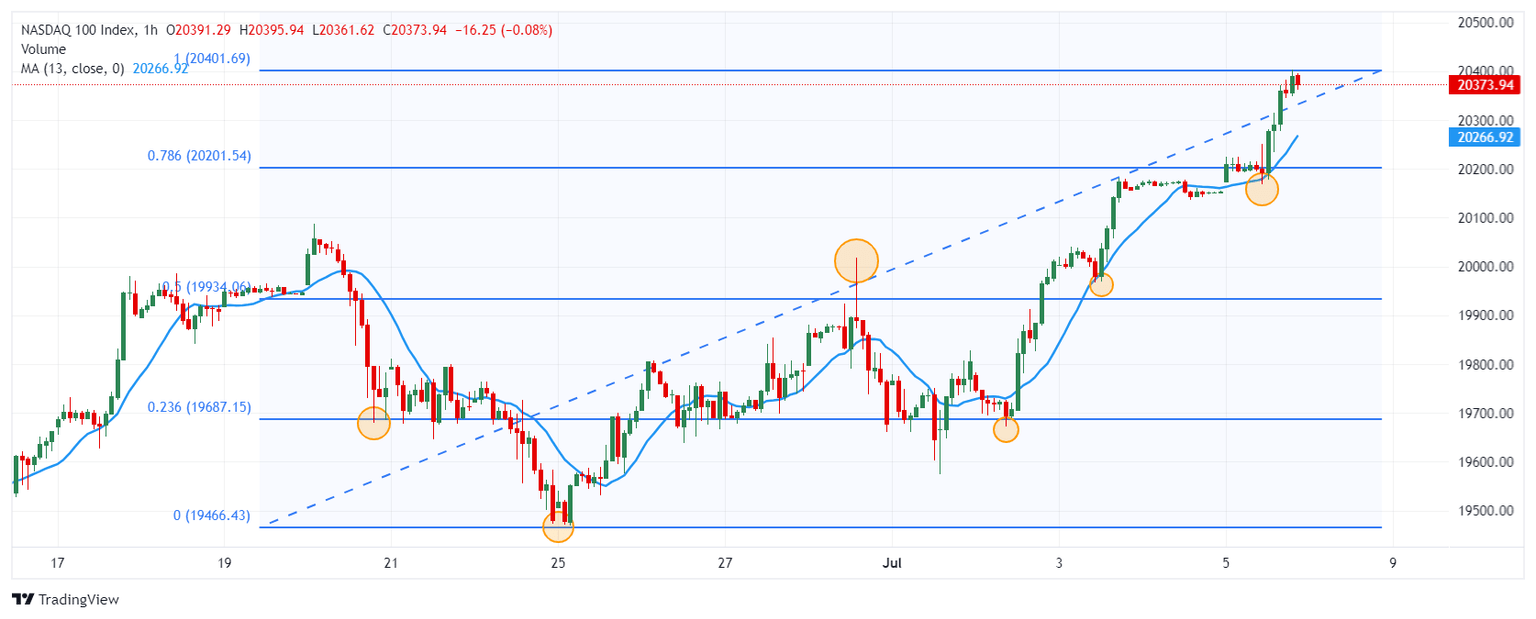 - El índice Nasdaq 100 marca un máximo histórico en 20.403 tras los datos de empleo de EE.UU.
