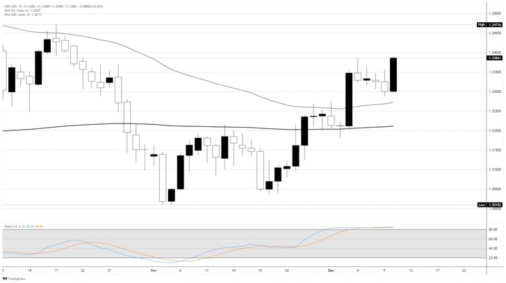 El GBP/USD alcanzó un nuevo máximo en siete semanas el miércoles, subiendo de nuevo al vecindario de 1.3400 después de que la Reserva Federal (Fed) realizara un recorte de tasas de interés ampliamente esperado por tercera vez consecutiva. El presidente de la Fed, Jerome Powell, mostró un enfoque particularmente cauteloso, insinuando que la Fed podría estar lista para otro período prolongado de "esperar y ver". Los mercados globales en gran medida ignoraron las advertencias del presidente de la Fed, y los mercados de tasas ya están valorando un ritmo más rápido de recortes de tasas en los próximos dos años de lo que la Fed misma espera.