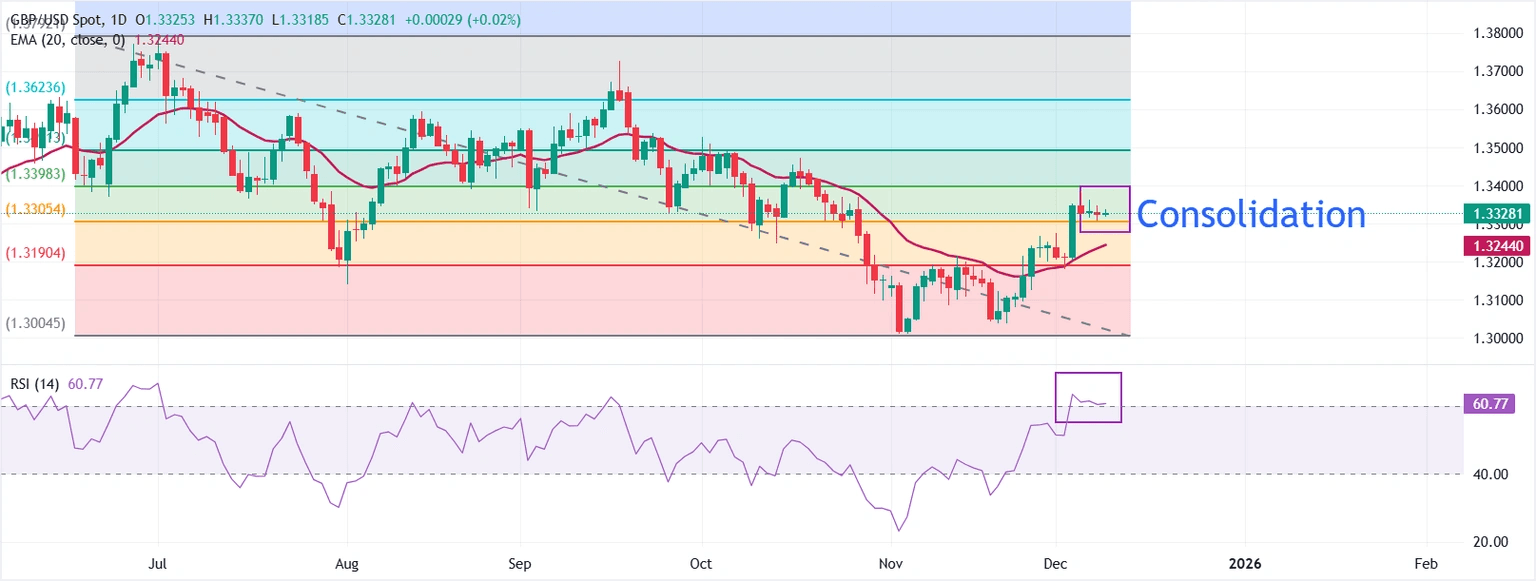 El GBP/USD se mantiene con ganancias modestas por encima de 1.3300 mientras la perspectiva dovish de la Fed pesa sobre el USD