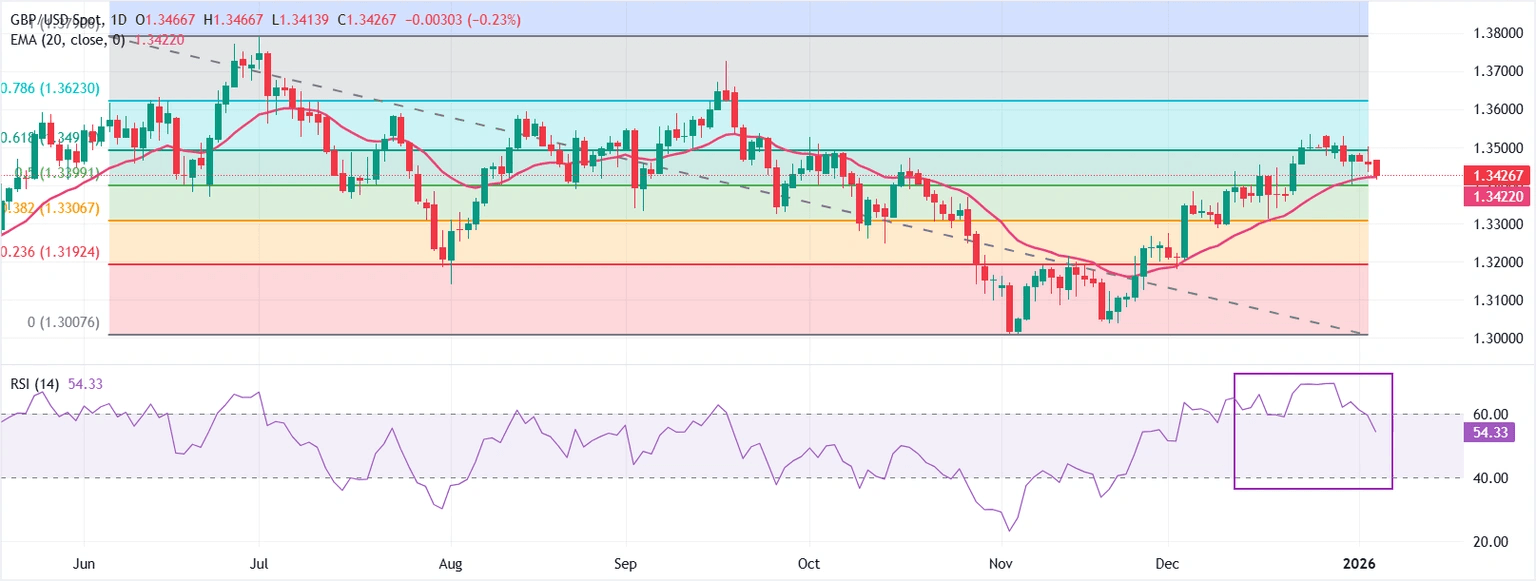 Pronóstico del Precio GBP/USD: Caídas hacia 1.3400 cerca de la EMA de 50 días