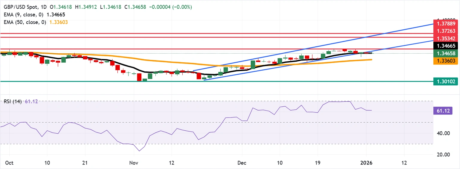 Pronóstico del precio del GBP/USD: Se mantiene por encima de la EMA de nueve días cerca de 1.3450