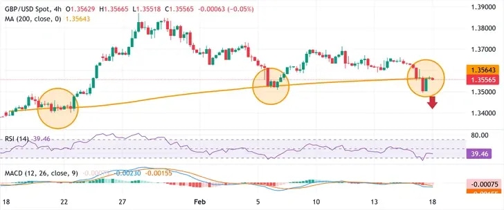 El GBP/USD cotiza ligeramente a la baja en torno a 1.3556 al momento de escribir. La media móvil exponencial (EMA) de 20 períodos tiende a la baja en 1.3593 y sigue limitando los rebotes. El precio se mantiene por debajo de esta medida, manteniendo un sesgo bajista a corto plazo. El índice de fuerza relativa (RSI) de 14 días en 39 (por debajo de 50) refleja un impulso contenido y favorece a los vendedores.