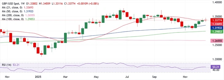 El GBP/USD gana terreno tras tres días de pérdidas, cotizando alrededor de 1.3390 durante las horas asiáticas del lunes. El par se deprecia mientras la Libra esterlina (GBP) se mantiene firme antes de la publicación del Producto Interior Bruto (PIB) del Reino Unido (UK) para el tercer trimestre.