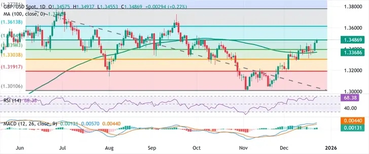 GBP/USD alcanza máximos de diez semanas antes de la desaceleración por las festividades