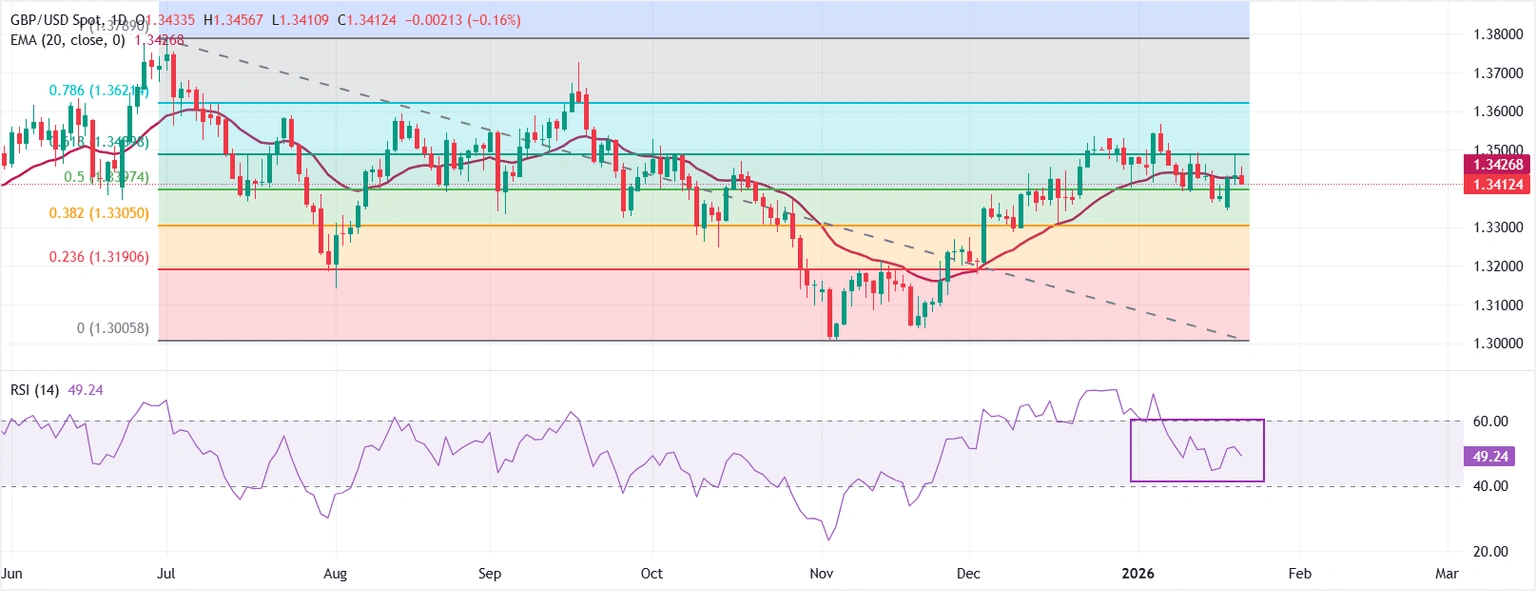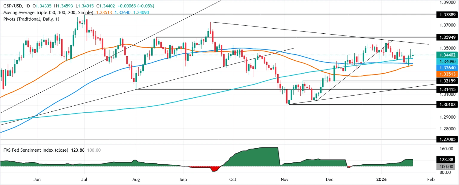 Noticias y pronóstico del precio de la libra esterlina: GBP/USD cae cerca de 1.3430 mientras Trump suaviza su retórica sobre Groenlandia