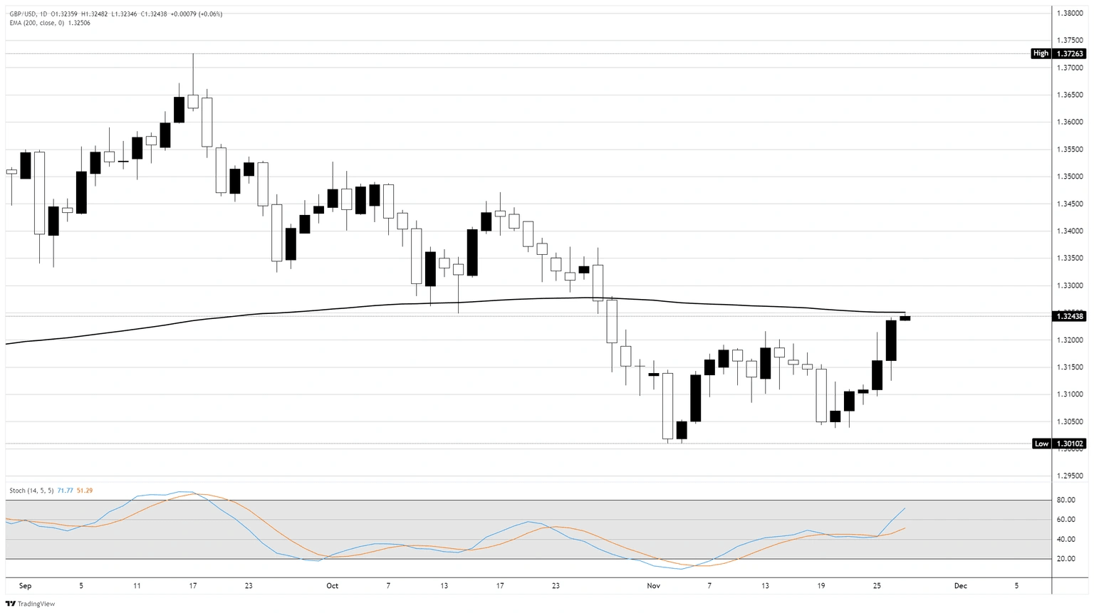 El par GBP/USD se mantiene estable en torno a 1.3230 el jueves mientras los participantes del mercado digieren el Presupuesto de Otoño del Reino Unido en medio de condiciones de liquidez de negociación reducida, con los mercados estadounidenses permaneciendo cerrados en observancia de la festividad de Acción de Gracias. Al momento de escribir, el par está plano en 1.3232, prácticamente sin cambios. Leer más...
