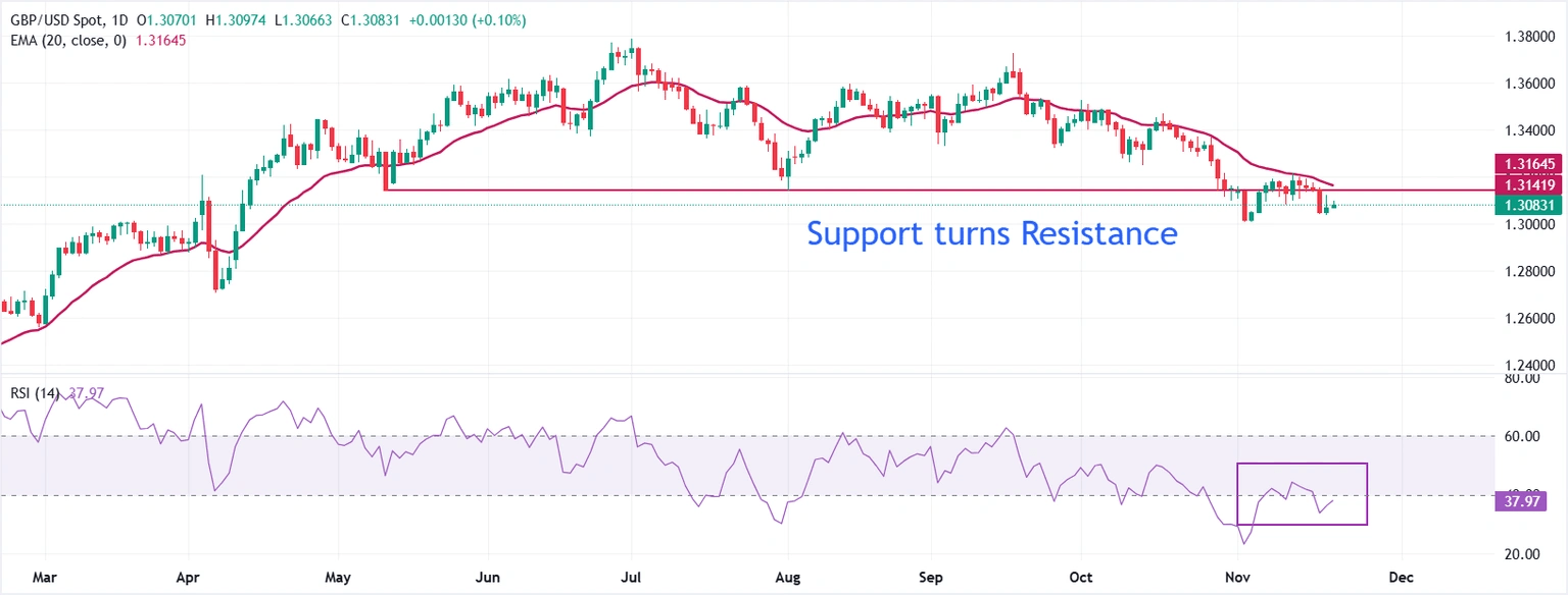 Pronóstico del precio del GBP/USD: Mantiene ganancias cerca de 1.3100, pero el impulso bajista persiste por debajo de la EMA de 100 días