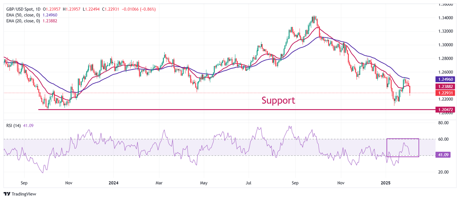 GBP/USD cae por debajo de 1.2300 tras los aranceles de Trump