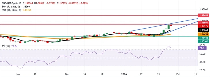 Pronóstico del Precio GBP/USD: Cotiza por debajo de 1.3800 tras retroceder desde máximos de cuatro años