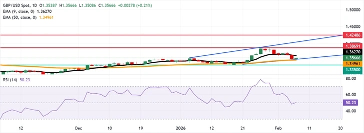 Pronóstico del Precio GBP/USD: Cotiza por encima de 1.3500 tras rebotar desde la EMA de 50 días