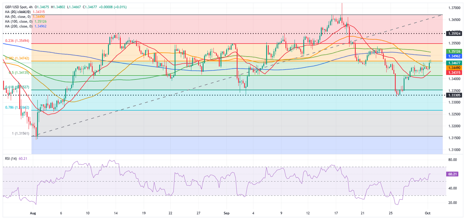 El par GBP/USD cotiza cerca de 1.3445 el miércoles, con la libra cerrando septiembre con su primer descenso mensual contra el dólar estadounidense desde julio.