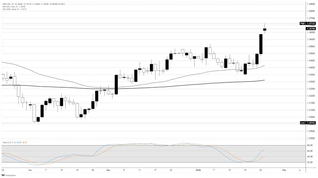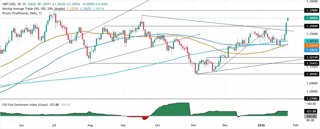 El GBP/USD logró un paso alcista interrumpido para abrir la nueva semana de operaciones, tocando el nivel de 1.3700 por primera vez desde septiembre. La administración Trump amenazó con aranceles adicionales a varias naciones europeas si no entregan el control de Groenlandia a EE.UU., pero los mercados continúan confiando en el habitual cambio de retórica sobre la guerra comercial desde la Casa Blanca.