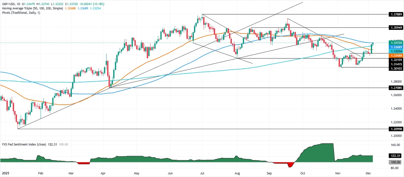 El evento clave para diciembre será la última decisión sobre tasas de interés de la Reserva Federal (Fed) programada para el 10 de diciembre. Los mercados siguen completamente comprometidos a esperar un tercer recorte consecutivo de tasas de la Fed el 10 de diciembre. Según la herramienta FedWatch de CME, los operadores de tasas están valorando casi un 90% de probabilidades de un recorte de un cuarto de punto la próxima semana. Los conjuntos de datos oficiales aún están muy rezagados, ya que las agencias federales luchan por ponerse al día tras el cierre del gobierno federal más largo en la historia de EE.UU. Conjuntos de datos privados recientes han insinuado que el mercado laboral de EE.UU. podría estar desmoronándose aún más a medida que se acerca el final del año, manteniendo las expectativas de los operadores de recortes adicionales de tasas en un nivel alto. Leer más...