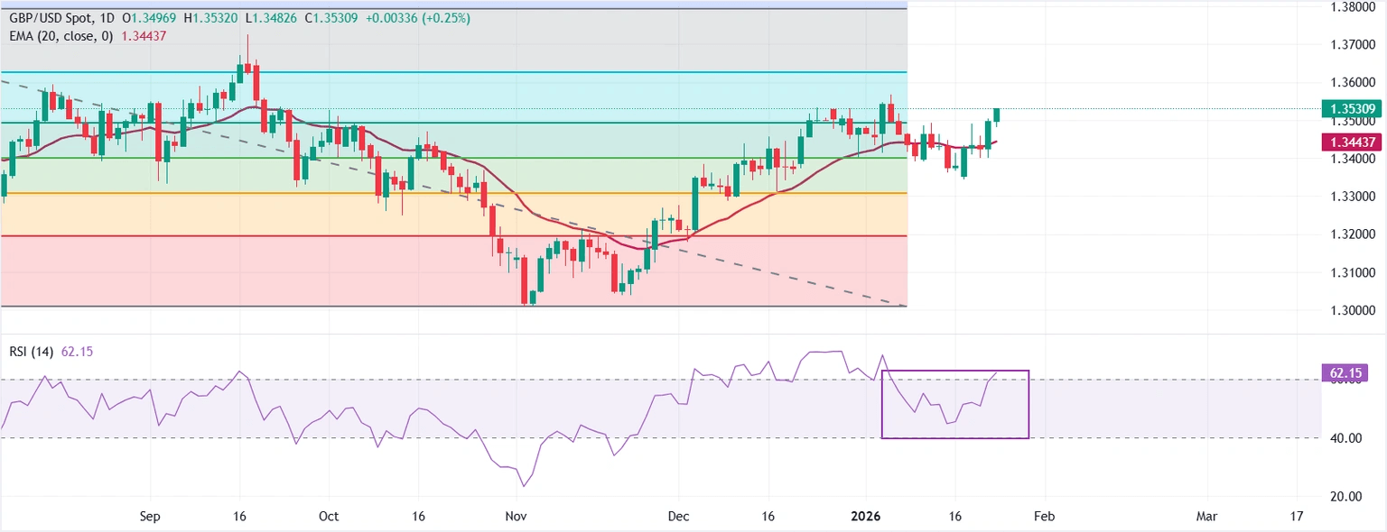 Noticias y Pronóstico del Precio de la Libra Esterlina: Salta por encima de 1.3540 tras las sorpresas al alza en las Ventas Minoristas y los PMIs del Reino Unido