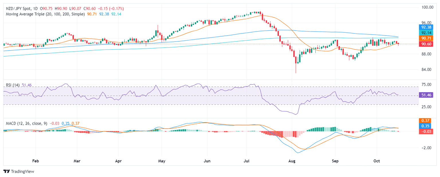 En la sesión del miércoles, el NZD/JPY cayó levemente a 90.60, continuando el movimiento lateral visto en las últimas sesiones.