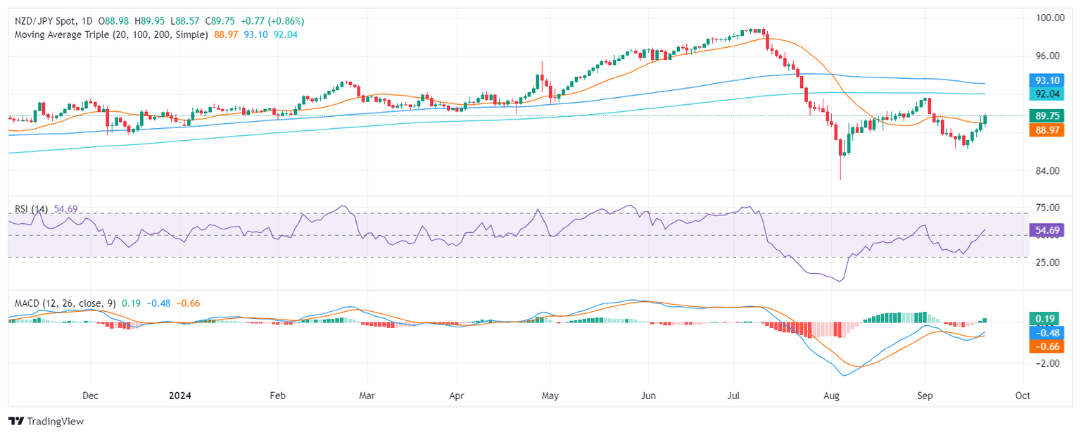 - El NZD/JPY subió casi un 0,90% a 89,80 el viernes.