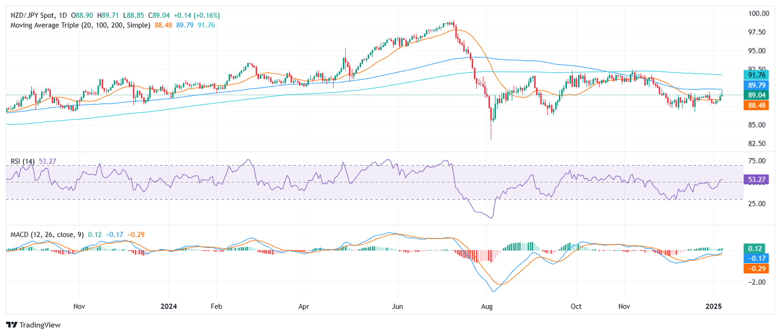 - El NZD/JPY sube a 88.90 el martes, manteniendo su reciente racha positiva.