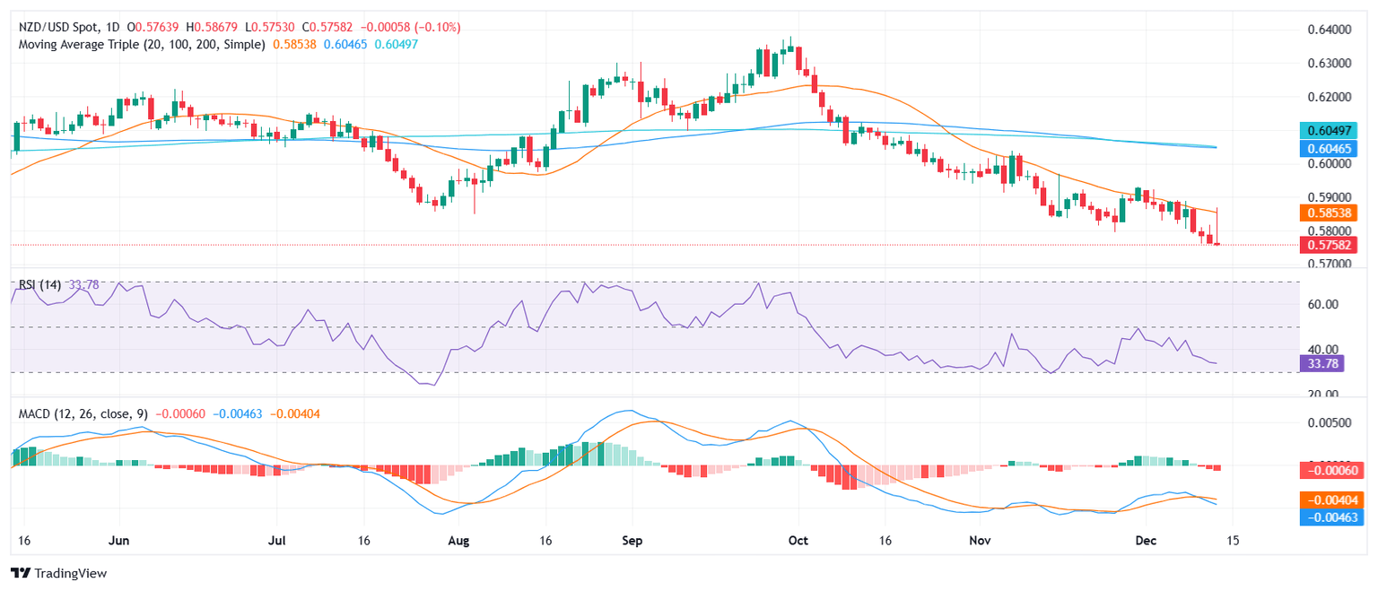 Análisis del Precio del NZD/USD: El par se desliza a la baja hasta 0.5760 mientras aumenta la presión vendedora
