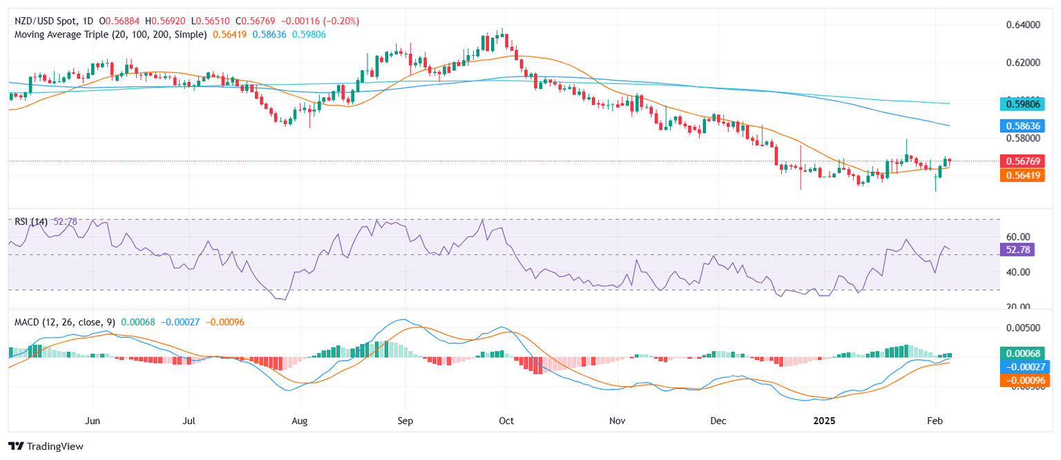De cara al futuro, mientras el NZD/USD se mantenga por encima de la SMA de 20 días, actualmente cerca de 0.5640, el sesgo alcista general permanece intacto. Una ruptura sostenida por encima de 0.5700 podría desencadenar más alzas hacia 0.5735, mientras que un cierre por debajo de la SMA podría exponer al par a un retroceso más profundo hacia 0.5600.