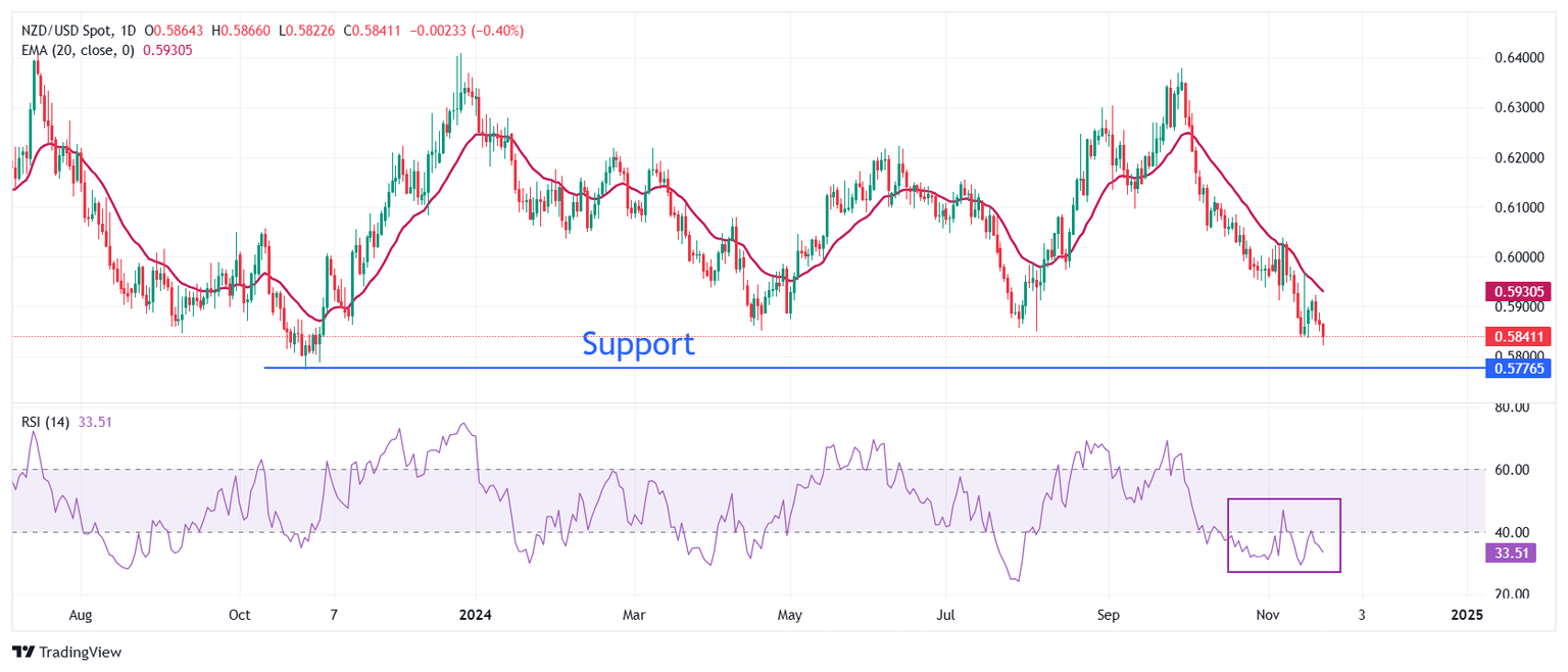 - El NZD/USD se recupera levemente después de refrescar el mínimo anual cerca de 0.5820, sin embargo, la perspectiva sigue siendo bajista.