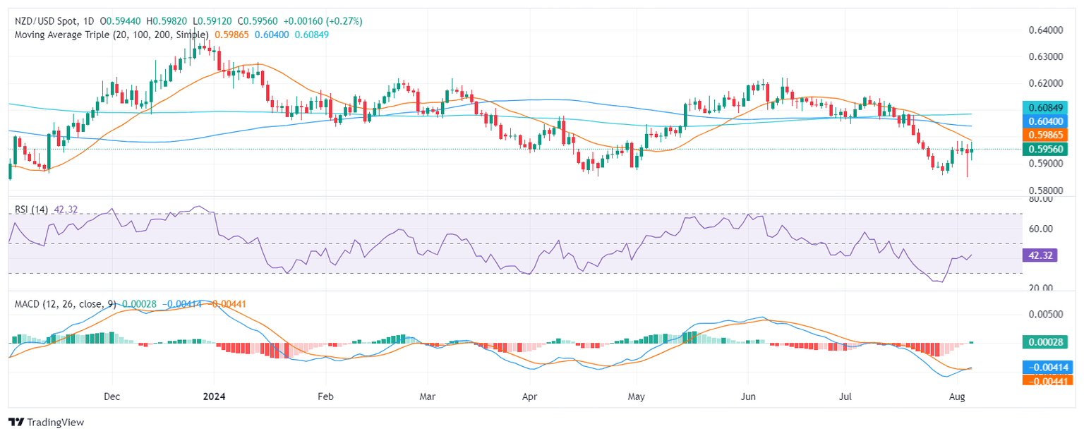 El martes, el par NZD/USD extendió sus ganancias, subiendo un 0.35% a 0.5960 y el gráfico diario muestra algunos signos favorables para los alcistas,