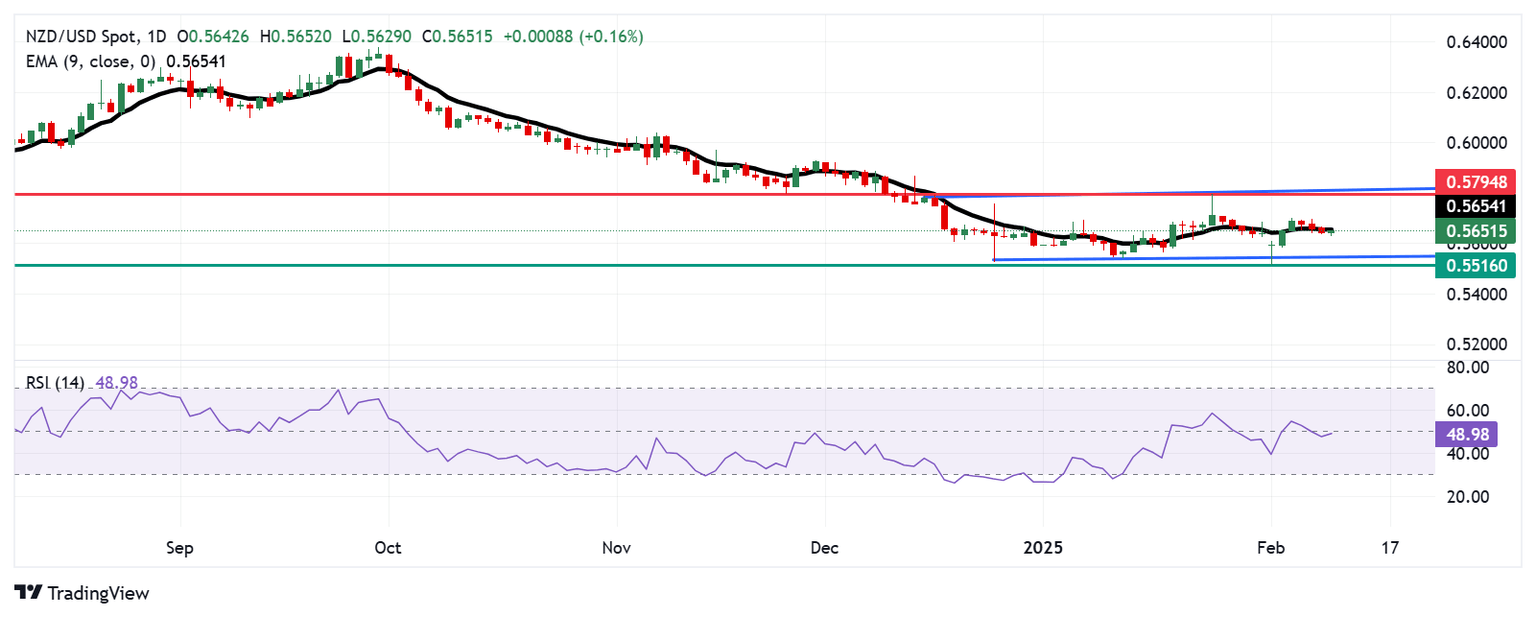 NZD/USD Pronóstico del Precio: Encuentra una barrera inmediata en la EMA de nueve días cerca de 0.5650