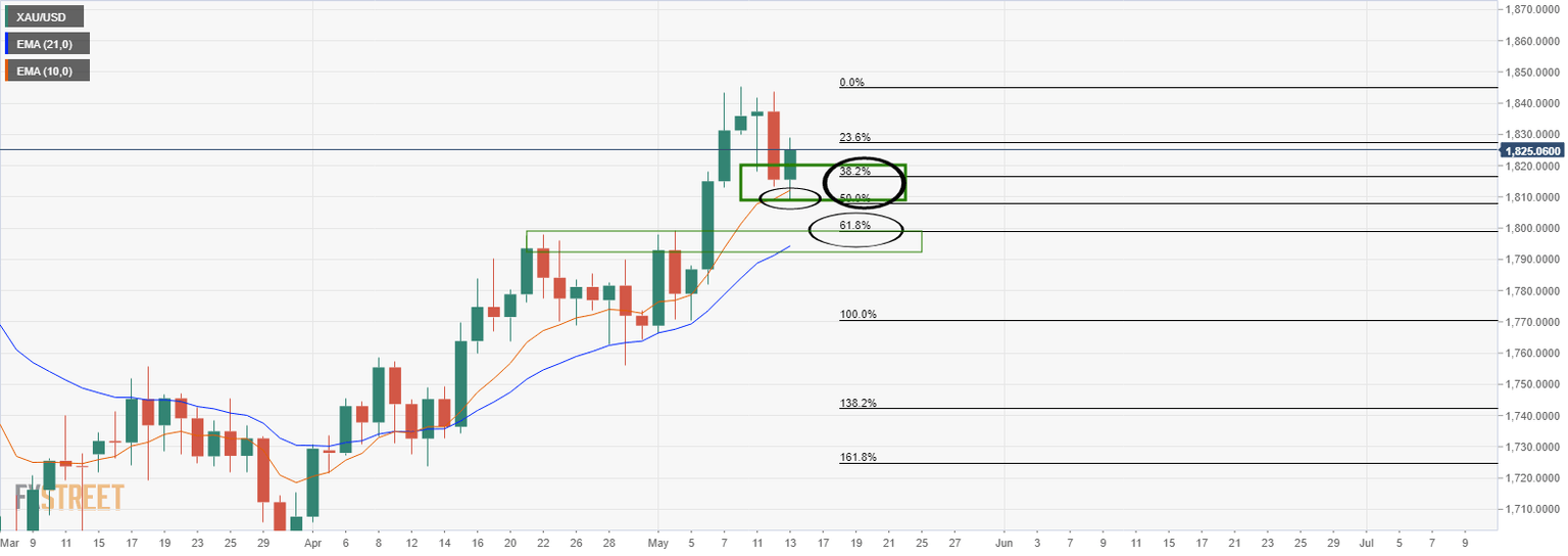 El XAU/USD ha viajado desde un mínimo de 1.808,86$ a un máximo de 1.828,83$ en lo que va del día.