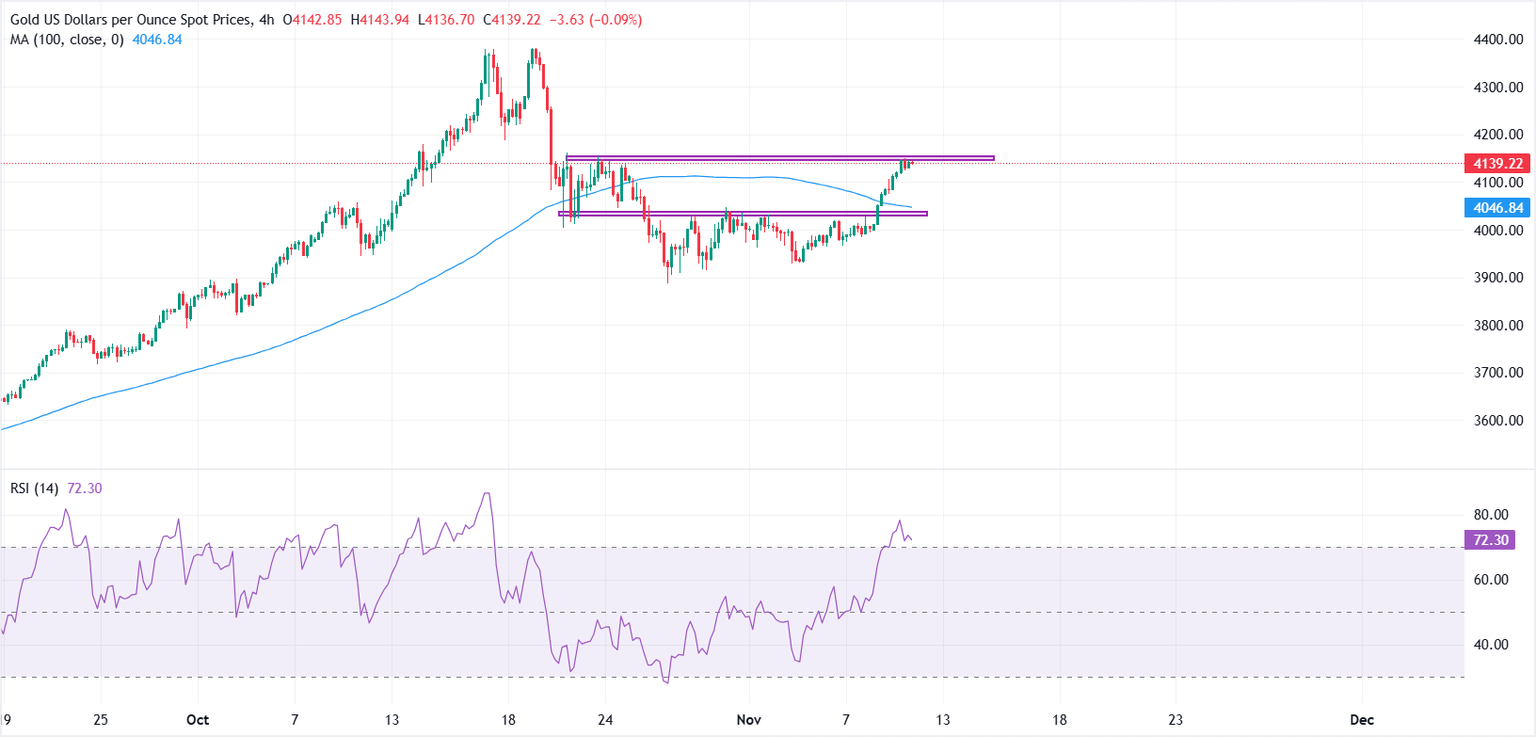Análisis técnico: El XAU/USD se consolida por debajo de 4.150$ tras un breakout alcista