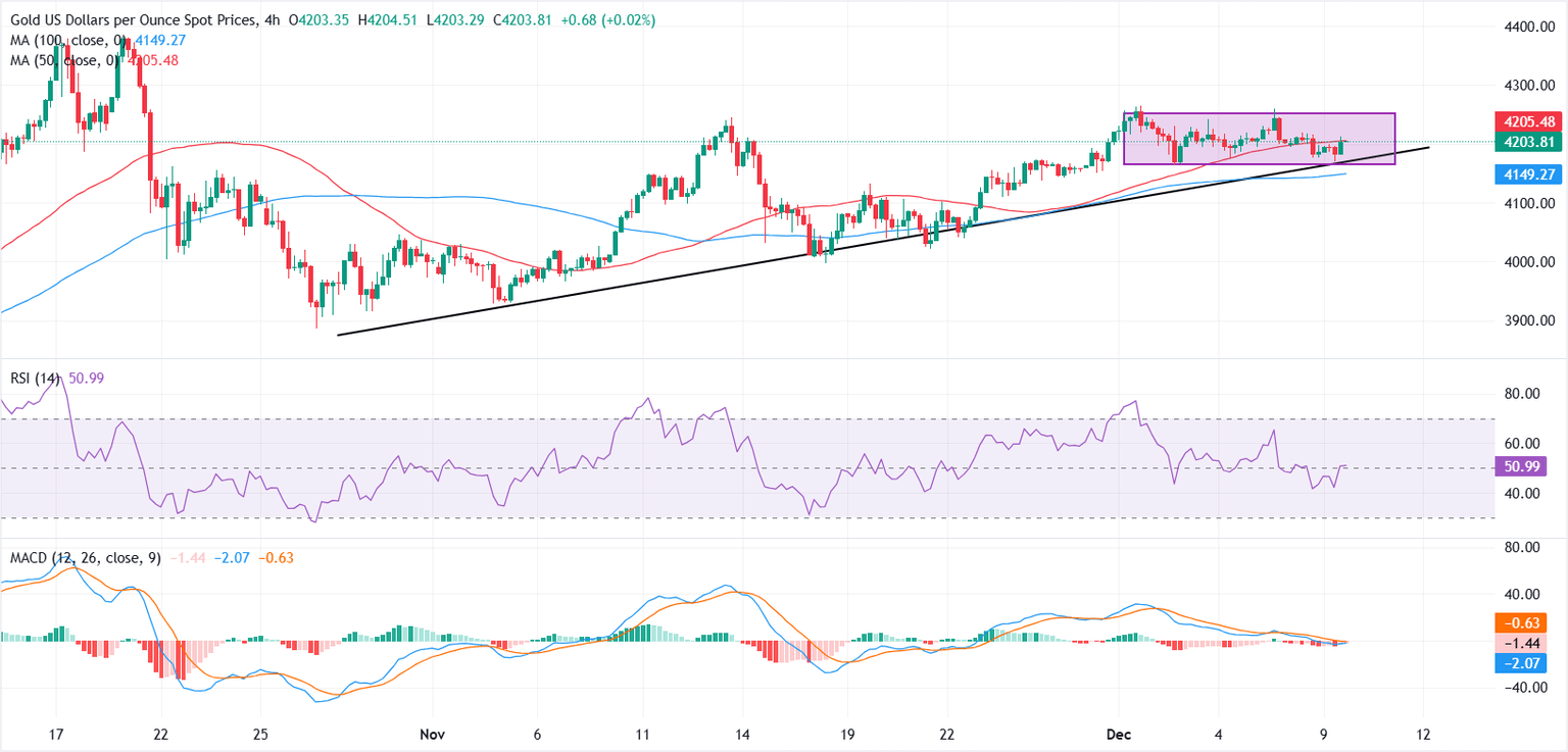 Al momento de escribir, el XAU/USD se cotiza alrededor de 4.205$ después de haber caído brevemente hacia 4.170$ más temprano en la sesión de trading europea.