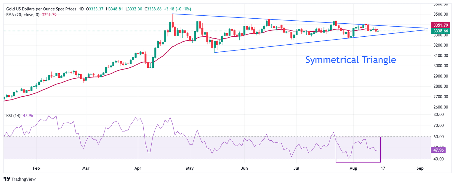 El precio del Oro (XAU/USD) cotiza con cautela en torno a los 3.340$ durante la sesión de negociación europea del viernes. El metal precioso se negocia en un rango limitado mientras los inversores esperan el resultado de la reunión entre el presidente de Estados Unidos (EE.UU.) Donald Trump y el líder ruso Vladimir Putin, que está programada para el viernes en Alaska.