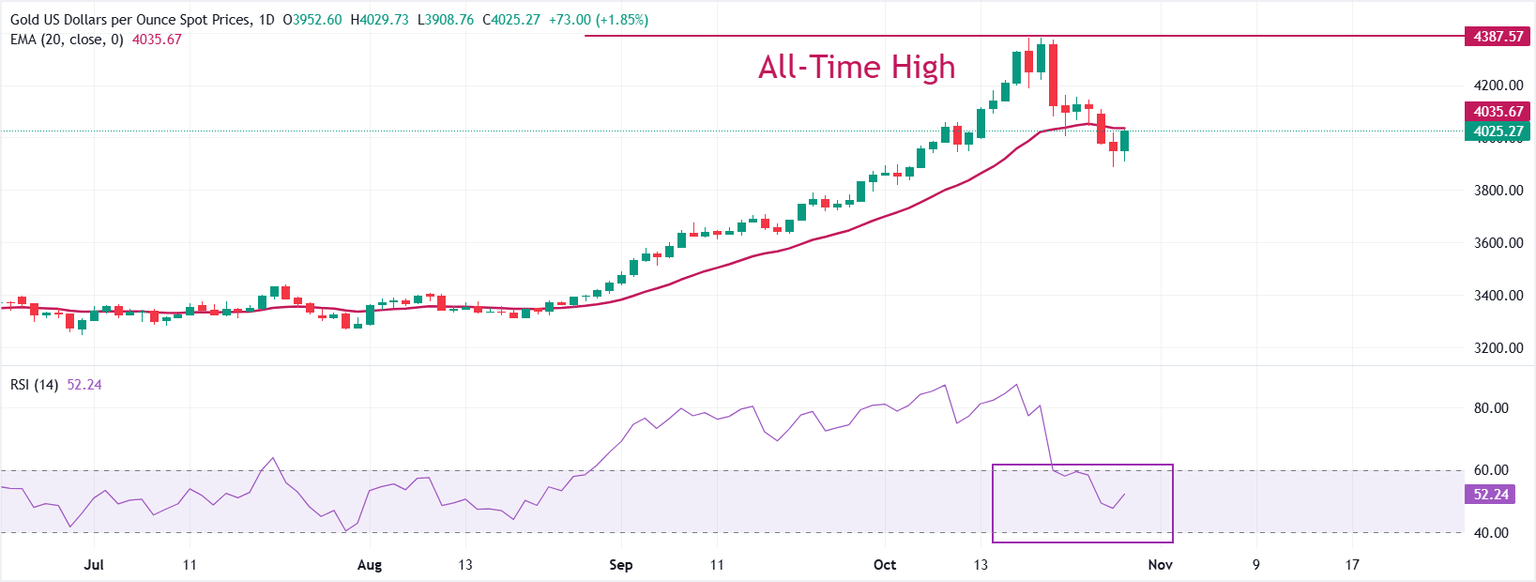 El próximo desencadenante para el precio del Oro será la reunión entre el presidente estadounidense Donald Trump y el líder chino Xi Jinping en Corea del Sur el jueves. Se espera que ambos líderes firmen el acuerdo comercial y discutan varios temas como el intercambio de tecnología, las exportaciones de tierras raras a Washington y los aranceles.