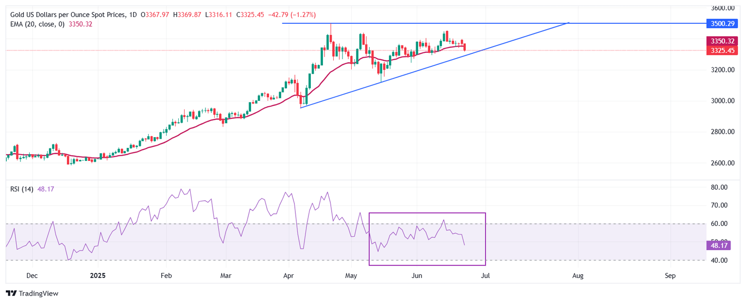 Oro Previsión del Precio: El XAU/USD cae por debajo de la EMA de 20 días mientras Israel e Irán llaman a un alto el fuego