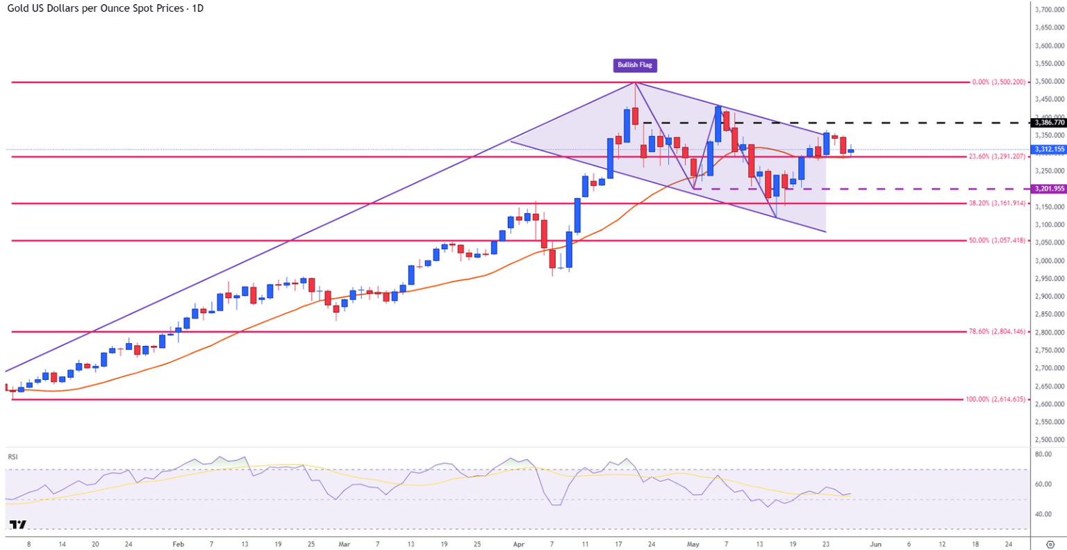 - Los niveles técnicos del XAU/USD permanecen firmes dentro de un patrón de bandera alcista.