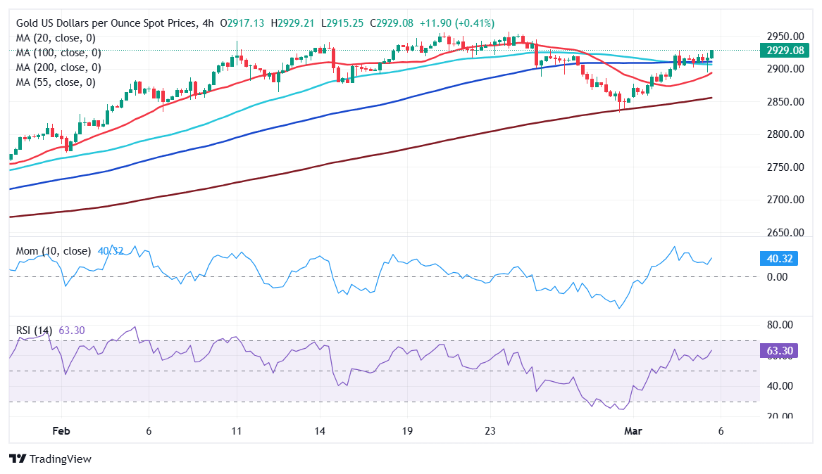 Pronóstico del Oro: El XAU/USD cotiza alrededor de los 2.930$ en medio de la escalada de la guerra comercial