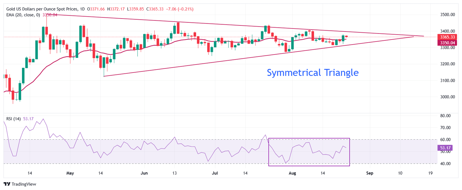 El precio del Oro (XAU/USD) se mantiene en ganancias cerca del máximo del viernes alrededor de 3.370,00$ durante la sesión de negociación europea del lunes. El metal precioso se negocia firmemente ya que el presidente de la Reserva Federal (Fed), Jerome Powell, ha señalado que está abierto a deshacer la restrictividad de la política monetaria en su discurso en el Simposio de Jackson Hole (JH) el viernes.